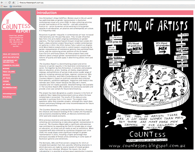As well as continuing the important work of data collection and dialogue around gender equity Countess plans to launch an expanded online platform that will actively commission essays and reviews and creative responses that contribute a wider analysis and dialogue around the issues that create and effect gender equity in the Australian visual arts.